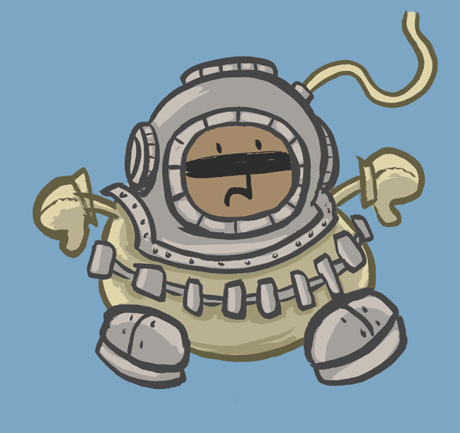 The chance came to draw Harold in an old diving suit, so here it is.